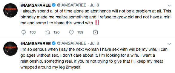 Earlier this week, the Love & Hip Hop New York star took to social media, sharing that he was waiting to have sex until he meets his wife.