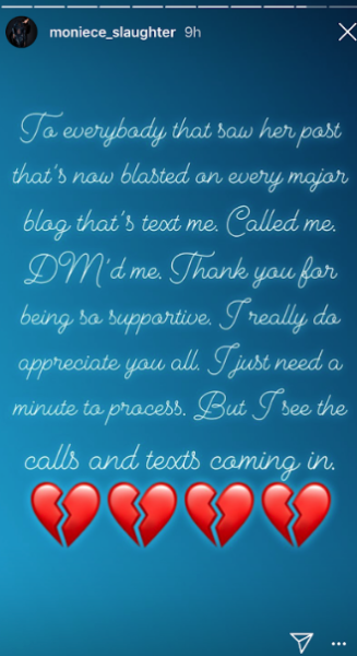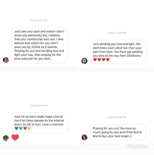 Moniece received an outpouring of encouragement and well-wishes from fans, friends, and family. The first reads: