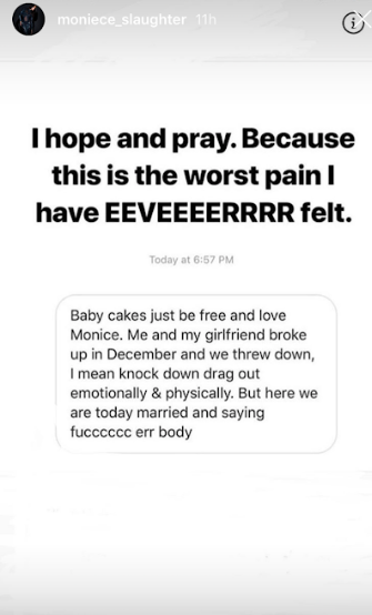 Moniece responded, disappointed and hurt by AD’s decision, by reposting the message with the following caption: