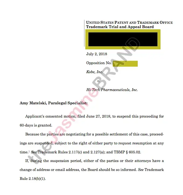 The NBA legend – via his company Kobe Inc – filed docs to block a company named Hi-Tech Pharmaceuticals from being able to register to trademark “Black Mamba HYPERRUSH”.