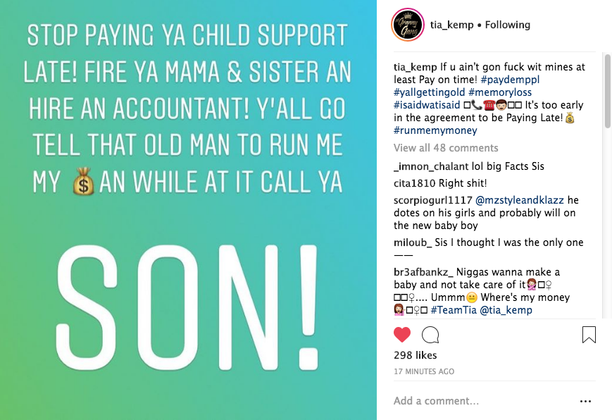 The co-parenting drama between Rick Ross and one of his baby mama’s, Tia Kemp, continues. Ross and Tia share a son, Robert William III. Tia recently took to social media alluding to the rapper paying his child support late and not communicating with their son. She doesn’t state his name, but some are speculating that the message is for Ross. See her message below.