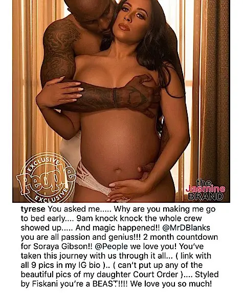 This week, Tyrese shared photos from Samantha’s maternity shoot and noted that he’d like to share a photo of his daughter Shayla, but can’t because of a court order. Sweetly holding Samantha’s belly he captioned the photo: