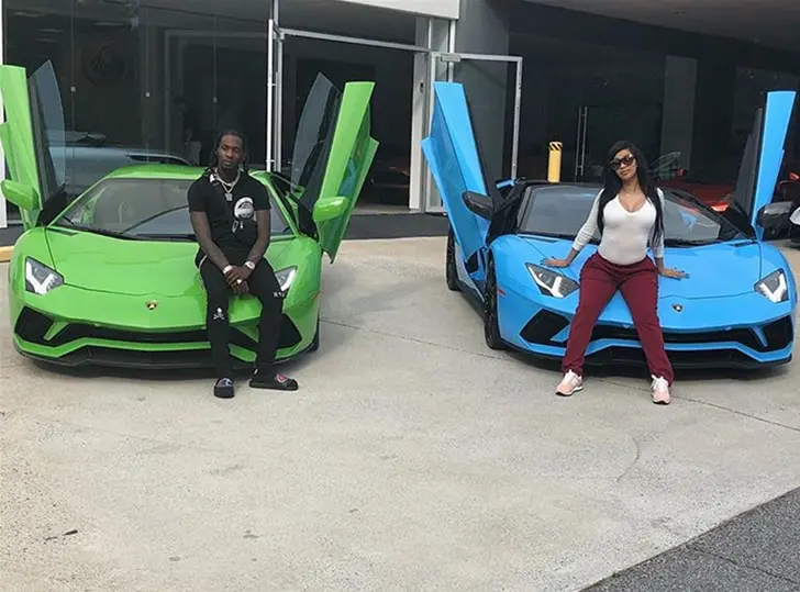 Over the weekend, the new mom and her husband Offset showed off their matching his and hers Lamborghini.
