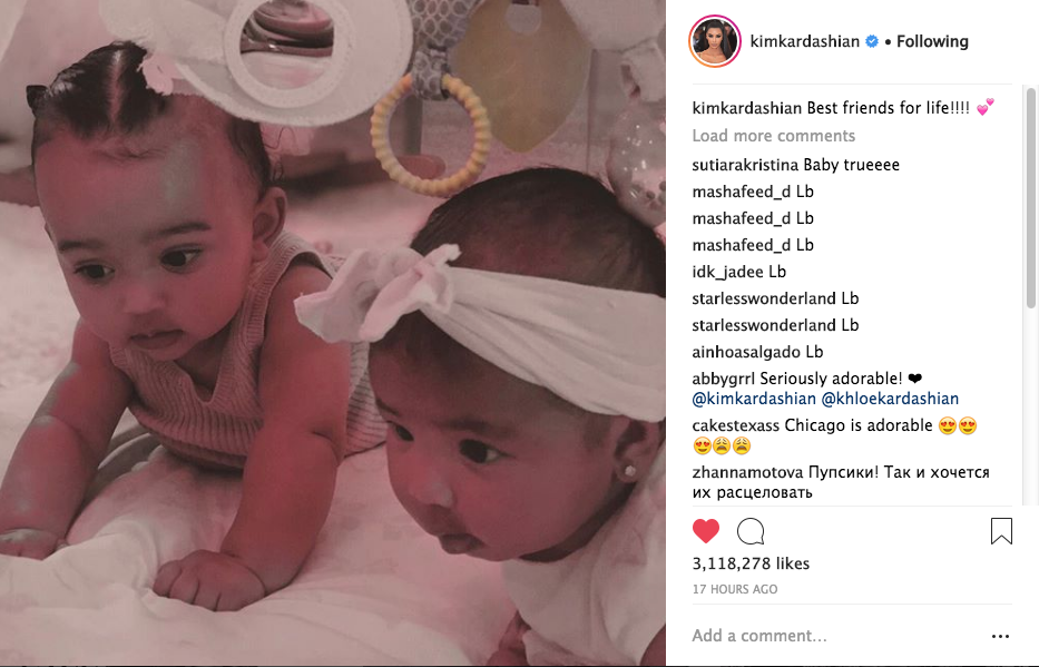 Baby fever alert! “Keeping Up With the Kardashians” star Kim Kardashian West has always used social media as her personal scrapbook. She recently shared an adorable photo of her 6-month-old baby girl Chicago, with her sister Khloe’s baby girl, 2-and-a-half-month old True. Kim posted this adorable caption of the cousins: