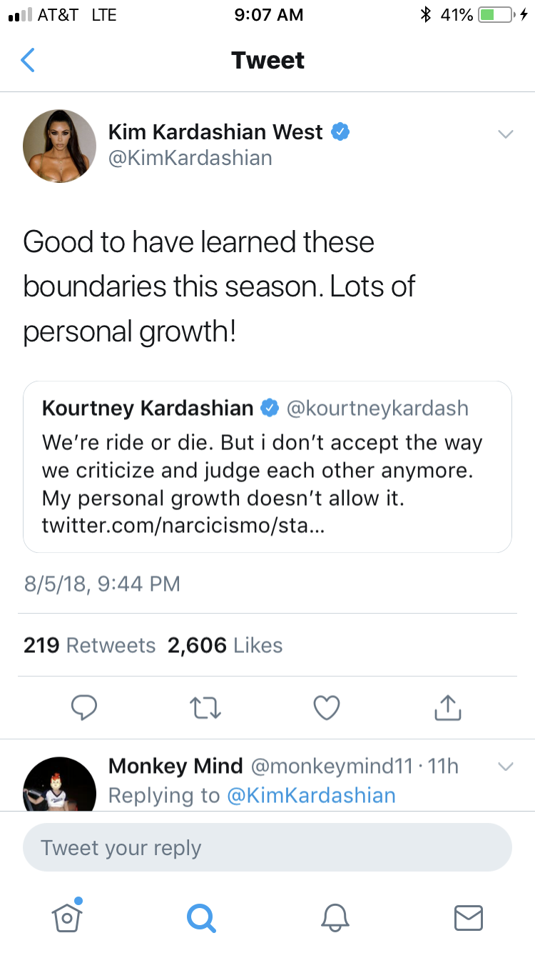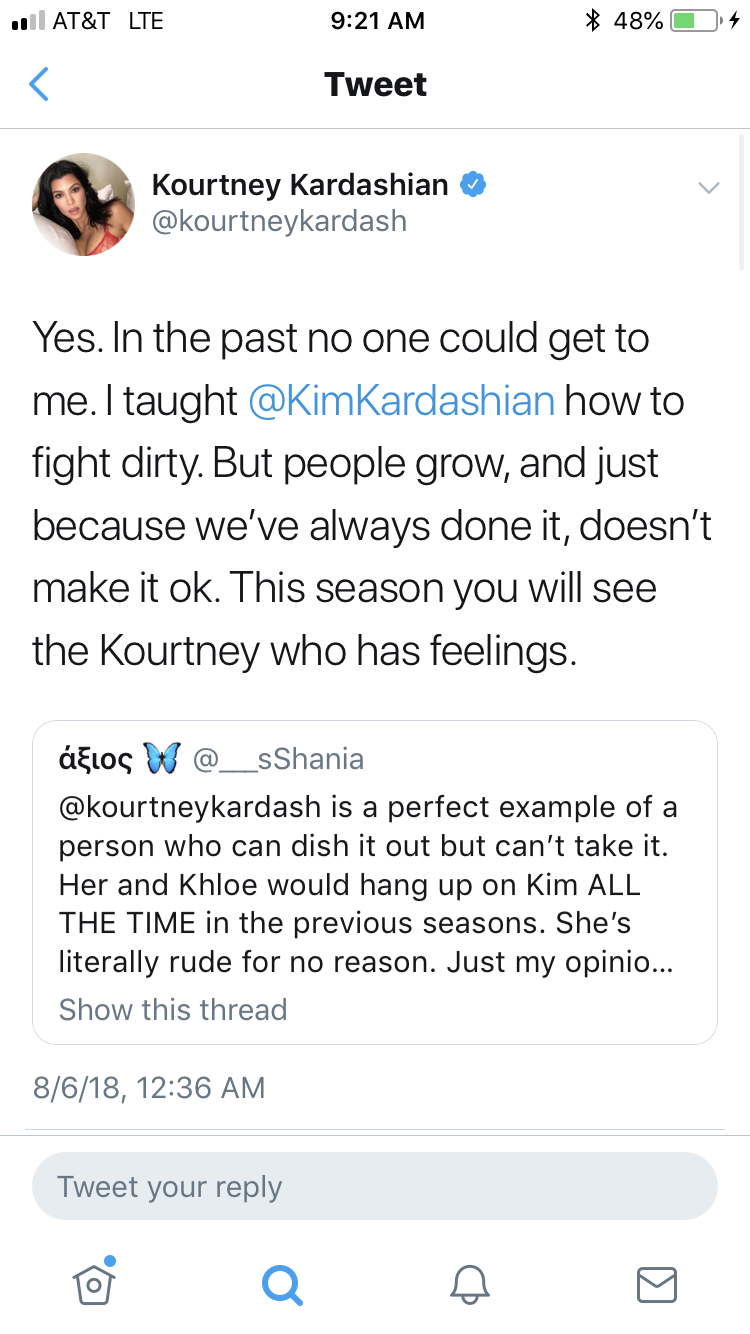 “Hey @kourtneykardash are you watching the same episode I am??? Do you think I was picking on you? I was genuinely concerned about your happiness. Stop looping me into your drama with Kim! Don’t ever tweet me that sh*t again! #KUWTK”