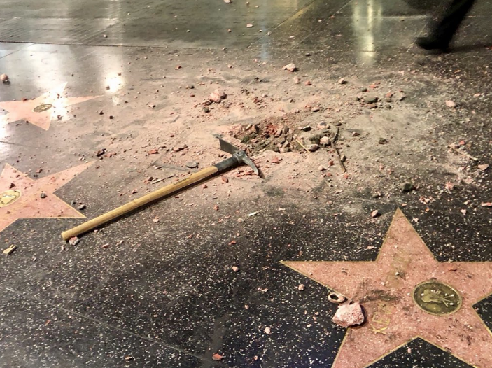 The Hollywood Walk of Fame is an institution celebrating the positive contributions of the inductees. When people are unhappy with one of our honorees, we would hope that they would project their anger in more positive ways than to vandalize a California State landmark. Our democracy is based on respect for the law. People can make a difference by voting and not destroying public property.