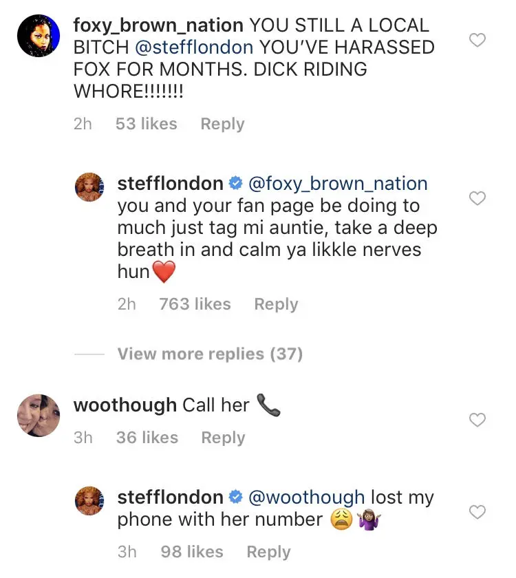 @foxy_brown_nation, an Instagram account for Foxy Brown fans, proceeded to attack Stefflon in the comment section.