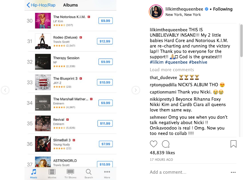 “THIS IS UNBELIEVABLY INSANE!!! My 2 little babies Hard Core and Notorious K.I.M. are re-charting and running the victory lap!! Thank you to everyone for the support!! ?? God is the greatest!!!”