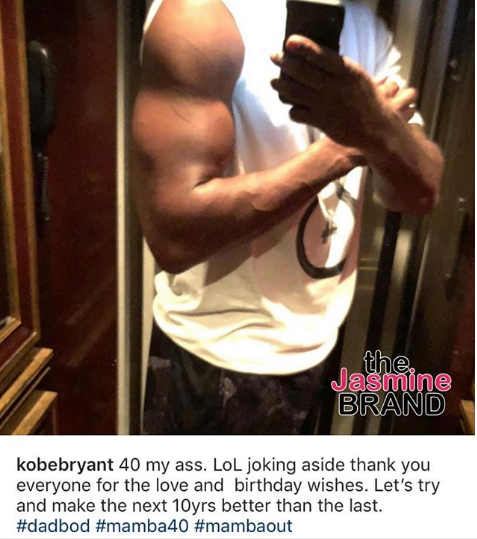 Kobe Bryant is celebrating a monumental birthday. On Thursday (August 23rd), the retired NBA player celebrated his 40th birthday. Proving that he does NOT have a ‘dad bod’, he posted a photo of himself showing off his muscular arms. He captioned the image