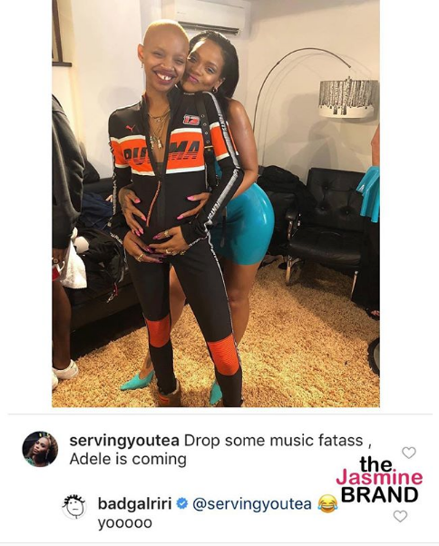 Rihanna caught wind of the comment and responded with a laughing emoji writing,