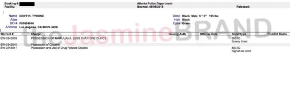 Additional reports reveal that Ty was the only person arrested, despite traveling with 6 others. Cocaine was also found in the vehicle. The singer/songwriter was booked into Fulton County Jail and charged with possession of less than one ounce of marijuana, possession of cocaine and possession and use of drug-related objects.