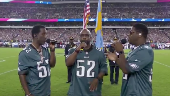 Philly’s own @BoyzIIMen performed tonight’s National Anthem prior to kickoff.#FlyEaglesFly pic.twitter.com/jW2M5m0ZqH