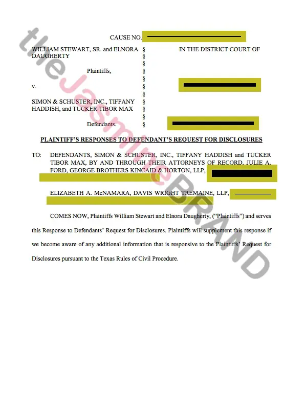William, along with his mother Elnora Daughtery, are suing the 38-year-old actress; Simon & Shuster, Inc. (the company responsible for publishing her book “The Last Black Unicorn”) and Tucker Tibor Max (the author who also wrote the book) in Travis County, Texas. They are suing for more than $1 million.