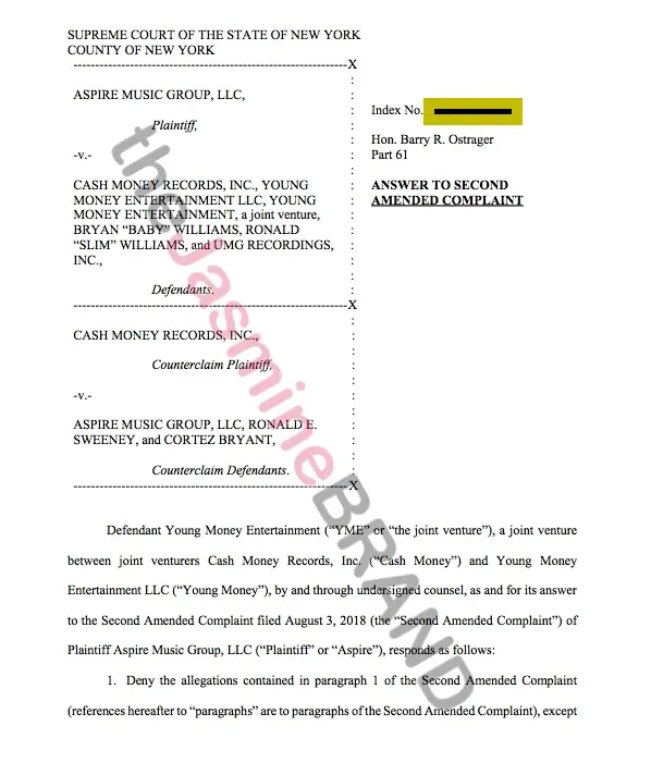 According to court documents, Aspire Music Group, run by Cortez Bryant, does not believe they owe Young Money any money from Canadian royalties.
