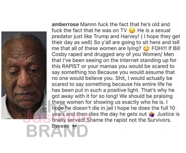 She said, what she said! Amber Rose says that she does NOT regret wishing death upon Bill Cosby. Last week, the Slut Walk advocate and feminist took to social media, criticizing the jailed comedian. She has since removed the message, but kept another message up on social media (see below), about her thoughts on Cosby.