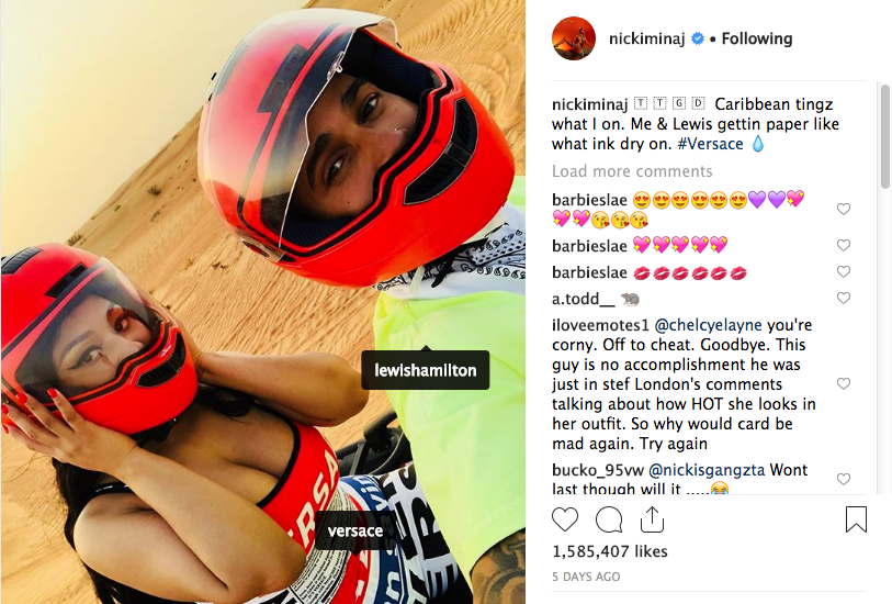 Over the past few months, Minaj has hinted at having a new relationship. In some of her Queen Radio episodes, she’s alluded to her bae referring to him as ‘new boy’. She’s yet to reveal the identify of ‘new boy’, but some speculate it’s Lewis Hamilton.