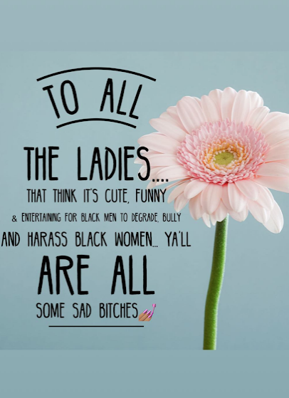 To all the ladies that think it’s cute, funny, and entertaining for black men to degrade, bully, and harass black women…y’all are some bad bitches.