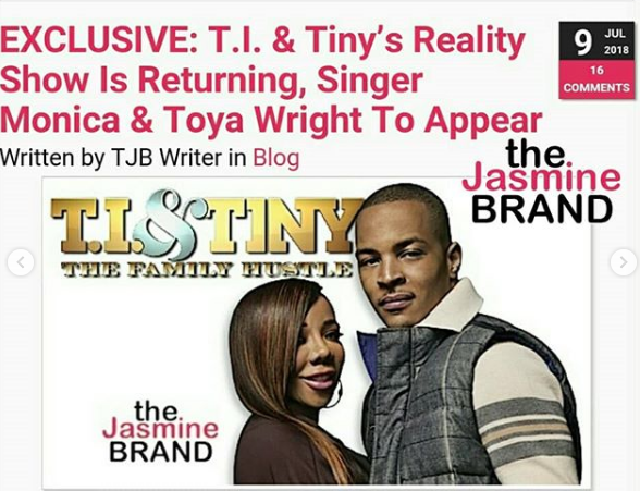 Earlier this year, theJasmineBRAND broke the story that T.I. and his wife Tameka ‘Tiny’ Harris were returning to reality TV.