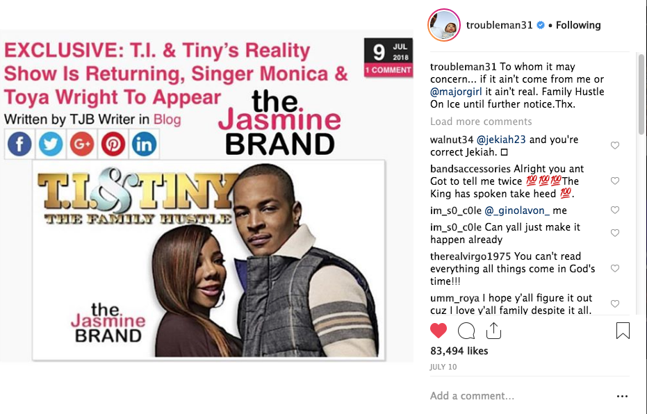 T.I. remained mum about the show throughout our reports, and noted that it was ‘on ice’ until ‘further notice.