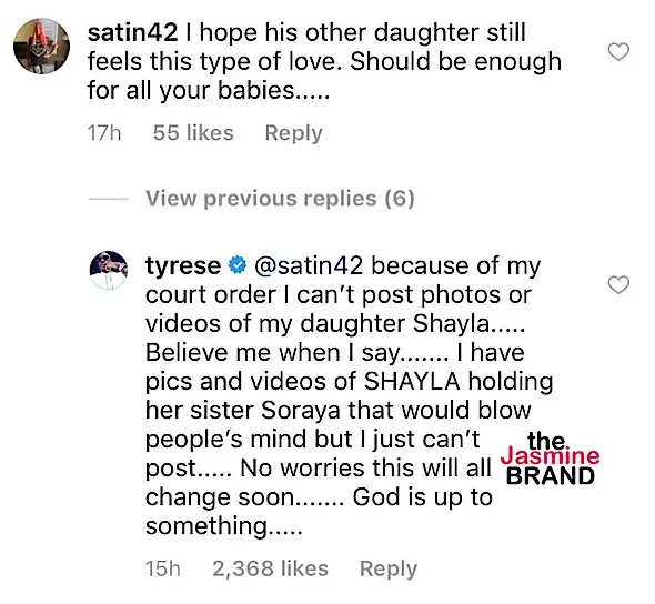 Soraya is not Tyrese’s first child. In a previous marriage, Tyrese also conceived another daughter named Shayla Gibson. According to a court order, the actor is not allowed to share photos of his daughter on the Internet or on social media platforms. Over the weekend, a user questioned why Tyrese was inconsistent when it came to sharing photos and videos of his other daughter. The user wrote,