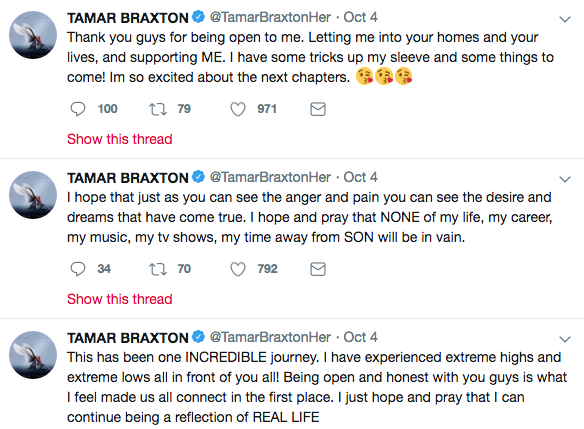 Meanwhile, Tamar took to twitter to thanks fans for supporting her on BFV. She says,