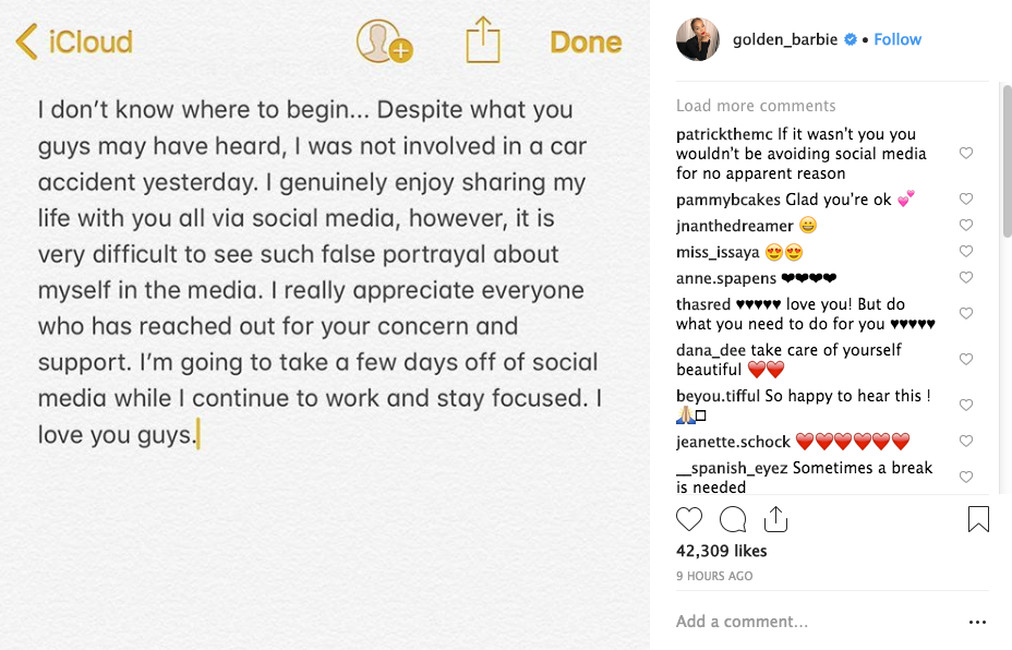Once discovered the $200K car was registered to Terrence Jenkins, it was presumed it was Terrance and Sanders who witnesses say they saw escape the accident, but according to Sanders’ rep, she was NOT involved in the crash which reportedly happened around 12:30 AM. She shared a message on social media.