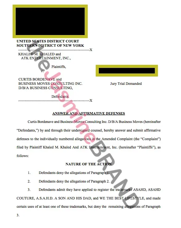 Here’s the latest: In August 2018, Curtis Borden Ave and Business Moves Consulting Inc. responded to Khaled’s lawsuit stating that they did nothing wrong. In the court documents, they explain that