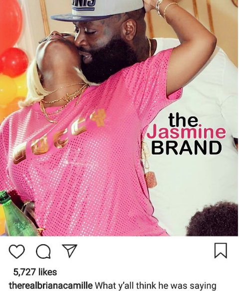 MMG rapper and CEO Rick Ross and his boo Briana Camille are still hot and heavy, and Briana is proudly marking her territory. She posted this photo of she and Rozay getting cutesy on Instagram. Her caption reads: