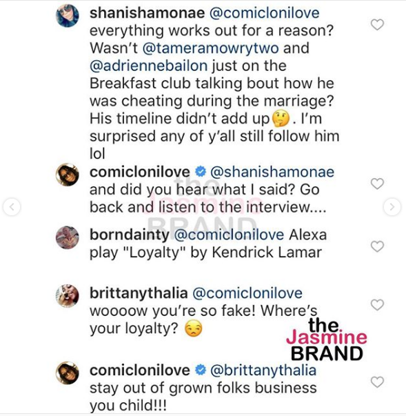 “@shanishamonae @comiclonilove everything works out for a reason? Wasn’t @tameramowrytwo and @adriennebailon just on the Breakfast club talking bout how he was cheating during the marriage? His timeline didn’t add up. I’m surprised any of y’all still following him lol”