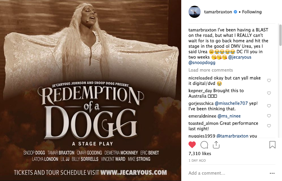 In more positive news, Tamar is currently touring with Snoop Dogg for a page stage play.