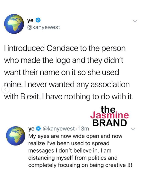 In Kanye West’s statement(s) distributed via Twitter on Tuesday, he confirmed he would no longer allow himself to be used to push narratives he doesn’t believe in, including Blexit, the organization created by extreme conservative Candace Owens. News spread about West designing wearable merchandise for Blexit, and the artist took to Twitter to clarify how he never designed anything for the organization and how he felt used.