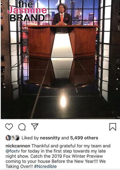 Nick Cannon is one step closer to having his own late night talk show. This week, he posted a photo of him on set. Captioning the image: