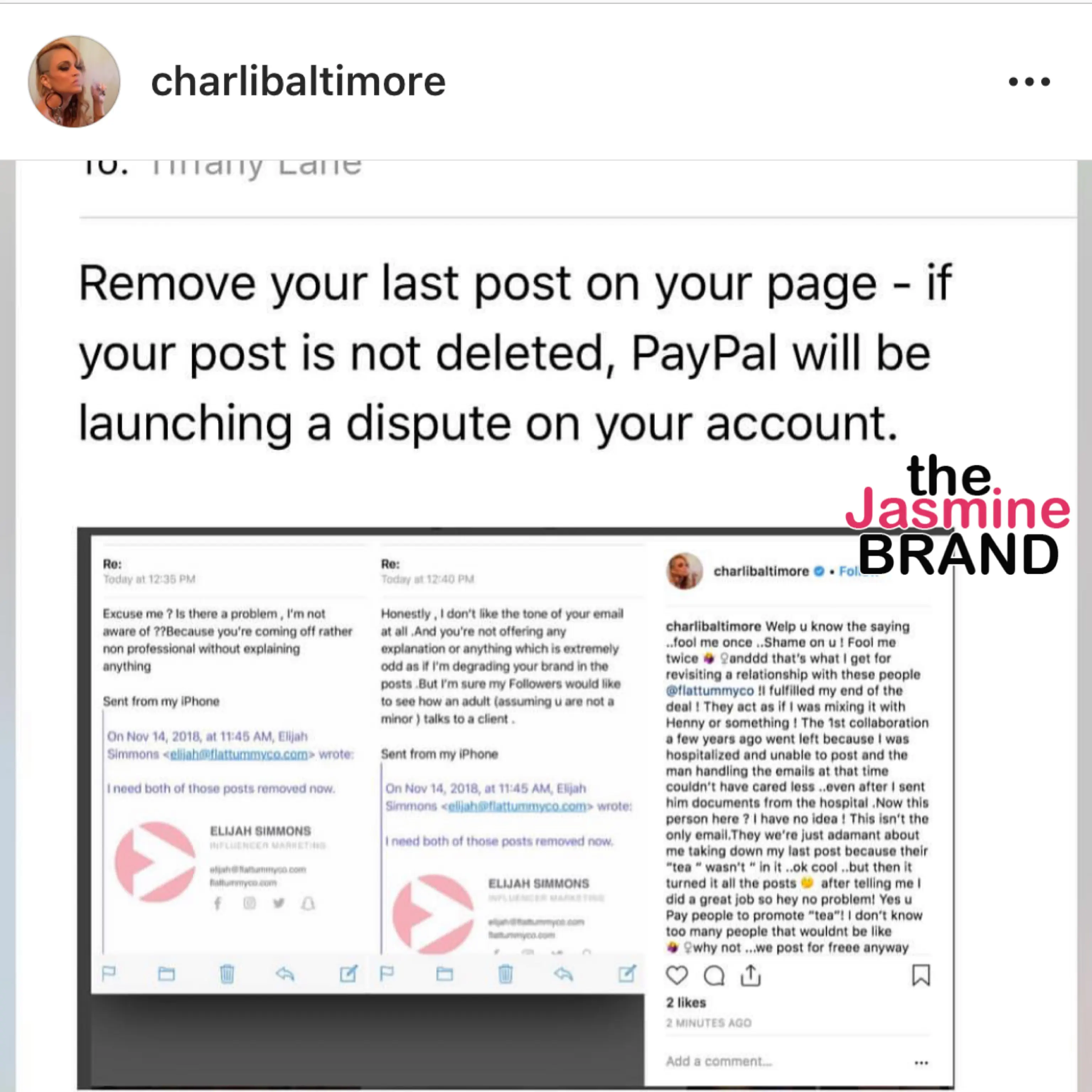 Charli Baltimore then explained that this is not the first time she’s had an issue with Flat Tummy Tea and that just a year ago they had a previous falling out.