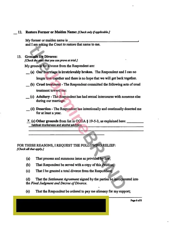 The couple was married in December 2016 and have no children. She did not list a date of separation. She checked the box stating she is not seeking alimony from Charlie.