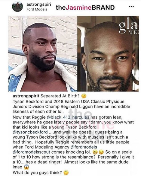 Separated At Birth? Tyson Beckford and 2018 Eastern USA Classic Physique Juniors Division Champ Reginald Liggon have an incredible likeness of each other lol. Now that Reggie @black_413_hercules has gotten lean, everywhere he goes lately people say “damn, you know what that kid looks like a young Tyson Beckford @tysoncbeckford ….and well, he does!! I guess being a young Tyson Beckford look alike with muscles isn’t such a bad thing. Hopefully Reggie remembers all us little people when Ford Modeling Agency @fordmodels @fordmodelsscout comes knocking lol. So on a scale of 1 to 10 how strong is the resemblance? Personally I give it a 10….hes a dead ringer! Almost looks like the same dude