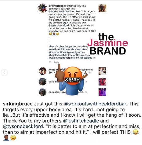 Just got this @workoutswithbeckfordbar. This targets every upper body area. It’s hard…not going to lie…But it’s effective and I know I will get the hang of it soon. Thank You to my brothers @justin.cheadle and @tysoncbeckford. ‘It is better to aim at perfection and miss, than to aim at imperfection and hit it.’ I will perfect THIS