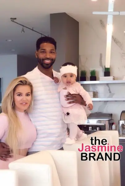 Drama aside, Khloe, Tristan and baby True were all smiles for Thanksgiving. The family wore a common theme as all three members wore pink. Khloé wore a pink two piece, while True wore something similar but with baby standards, as Thompson sported a pink button down polo. The family posed for a photo together to capture the moment.