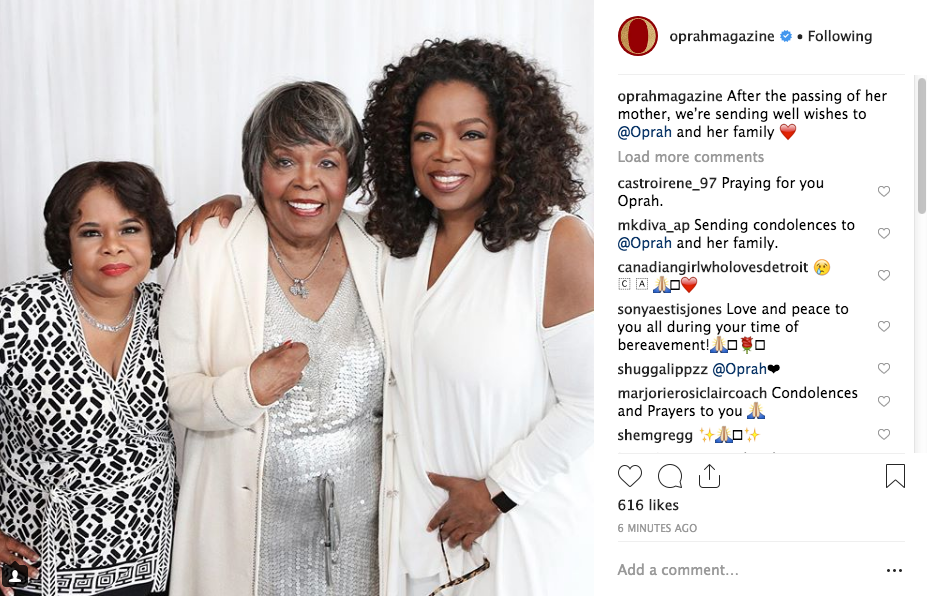After the passing of her mother, we’re sending well wishes to @Oprah and her family ??