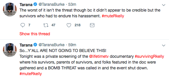 The private event was to include a screening and Q&A sessions. The panelists were Tarana Burke, the founder of the Me Too movement; R. Kelly accusers Kitti Jones, Jerhonda Pace, Lisa Van Allen and Asante McGee; and executive producer Brie Miranda Bryant.