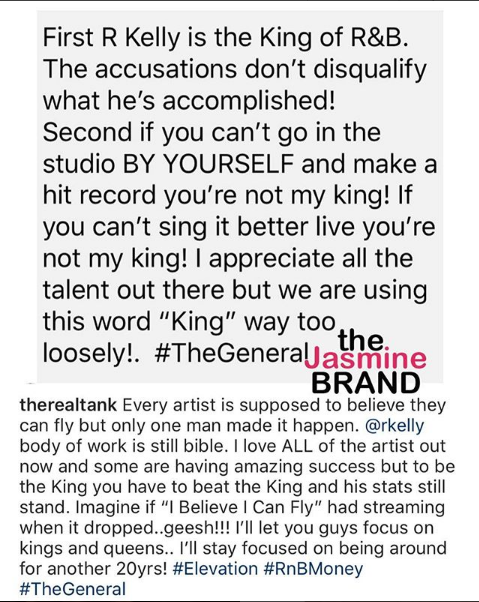 Tank caught wind of Jacquees’ comments and explained that he disagrees, crediting R.Kelly.