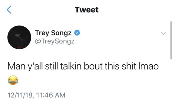 Meanwhile, heart-throb Trey Songz wants us to stop talking about it all together. He tweeted: