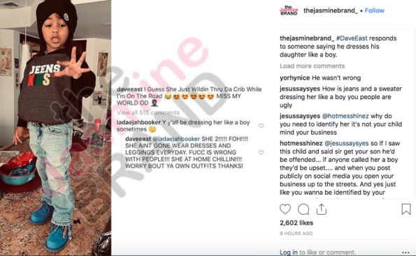 Dave East fired back at social media for questioning how he and his family dresses his daughter Kairi Brewster. In the since deleted image, East shared a photo of his daughter on Instagram to express him missing his seed while working. The caption read,
