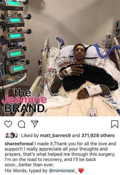 Update: Shareef O’Neal has recovered from surgery and provided fans an update on his condition. He writes,