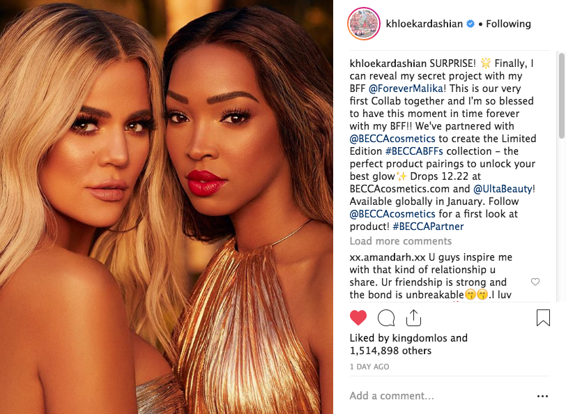 SURPRISE! ? Finally, I can reveal my secret project with my BFF @ForeverMalika! This is our very first Collab together and I’m so blessed to have this moment in time forever with my BFF!! We’ve partnered with @BECCAcosmetics to create the Limited Edition #BECCABFFs collection – the perfect product pairings to unlock your best glow? Drops 12.22 at BECCAcosmetics.com and @UltaBeauty! Available globally in January. Follow @BECCAcosmetics for a first look at product! #BECCAPartner