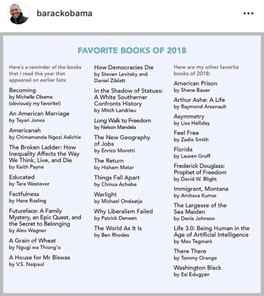 In addition to his favorite songs, Obama also shared his favorite books and movies throughout 2018. Check out the full list below.