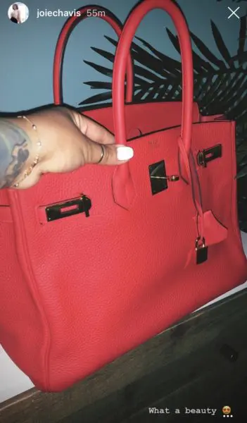 She also posted a photo of a brand new red leather Birkin bag. Could this be a gift from Future Claus? She commented on the expensive bag: