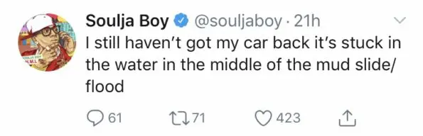 Soulja Boy Survives California Mudslide Accident: “I’m just thankful to be alive”