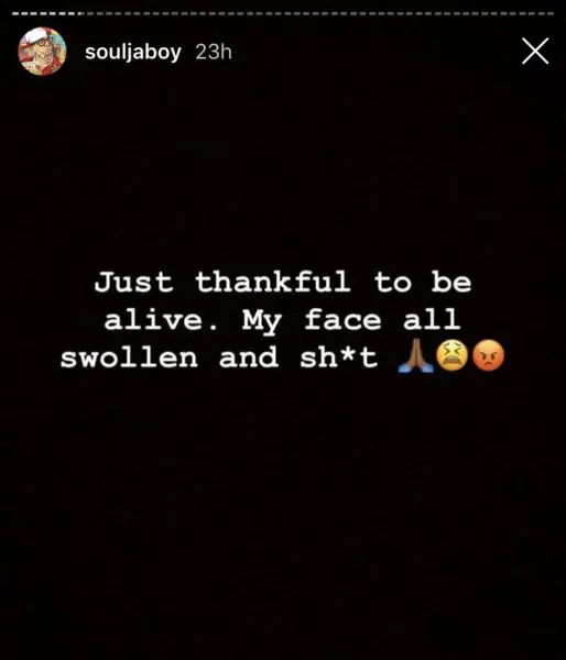 Soulja Boy (real name DeAndre Cortez Way) later updated fans on his condition after the accident. He posted this message to his Instagram Story: