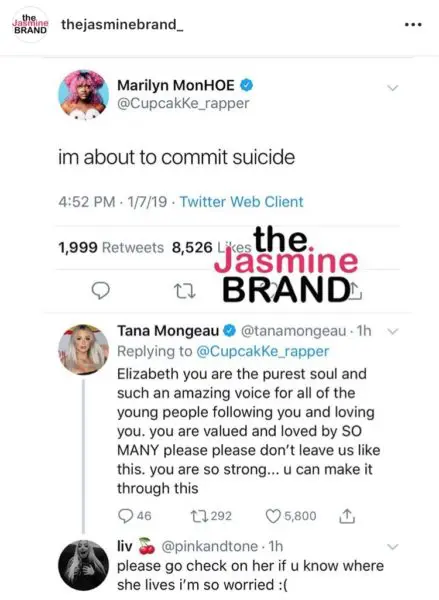CupcakKe, a provocative rapper shocked fans Monday (Jan. 7) evening, by writing on social media she would be taken her own life. In a tweet posted at 4:52 PM she wrote,