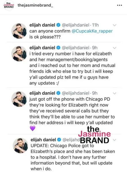 An artist by the name of Elijah Daniel caught the tweet and began doing his best to ensure the rapper’s safety. He shared multiple tweets providing updates to fans and his followers about the status of CupcakKe. Daniel says he was able to contact Chicago’s police department and they confirmed she had been found in her home and hospitalized.
